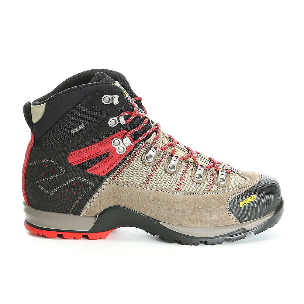 One-piece water-resistant 1,8 mm suede leather upper. Gore-Tex® lining, waterproof and breathable. Lasting board with Duo Asolflex technology. Midsole in PU mono density. Asolo® highly technical sole, the balance of the outsole has self-cleaning lugs designed for optimum performance on varying types of terrain. Classic lacing system. Toe rubber cap.